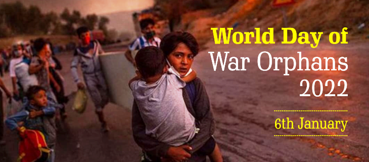 ଯୁଦ୍ଧରେ ଅନାଥ ହୋଇଥିବା ପିଲାମାନଙ୍କର ଦୁଃଖ ବିଷୟରେ ସଚେତନତା ସୃଷ୍ଟି କରିବା ପାଇଁ ପ୍ରତିବର୍ଷ ଜାନୁଆରୀ 6 ରେ ଯୁଦ୍ଧ ଅନାଥ ପିଲାମାନ ବିଶ୍ୱ ଦିବସ ପାଳନ କରାଯାଏ | ଯୁଦ୍ଧ ହେତୁ ଅନାଥ ହୋଇଯାଇଥିବା ପିଲାମାନଙ୍କ ବିଷୟରେ ସଚେତନତା ସୃଷ୍ଟି କରିବାକୁ ଏହି ଦିନର ଲକ୍ଷ୍ୟ ରହିଛି।